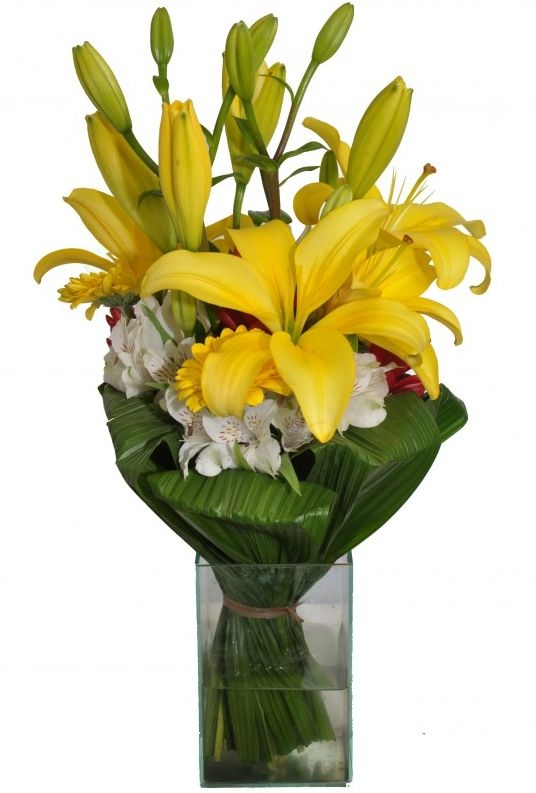 Arranjo de Lírios Yellow no Vidro Médio