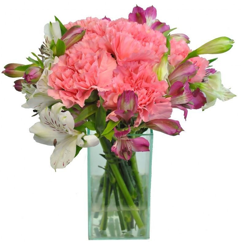 Arranjinho elaborado com três tipos de flores mistas e delicadas em cores da época no vidrinho,