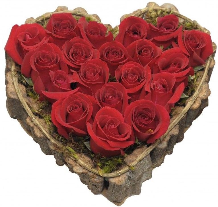 Maravilhoso coração elaborado com 20 rosas vermelhas ou 10 rosas colombianas, dentro de uma peça de madeira em formato de coração, embalado para presente no celofane transparente e acompanha um lindo laço de cetim.