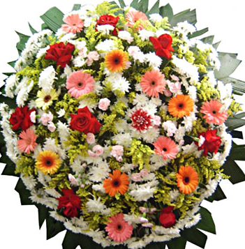Coroa confeccionada cuidadosamente com Rosas, Gérberas,Crisântemos em Cores da Época