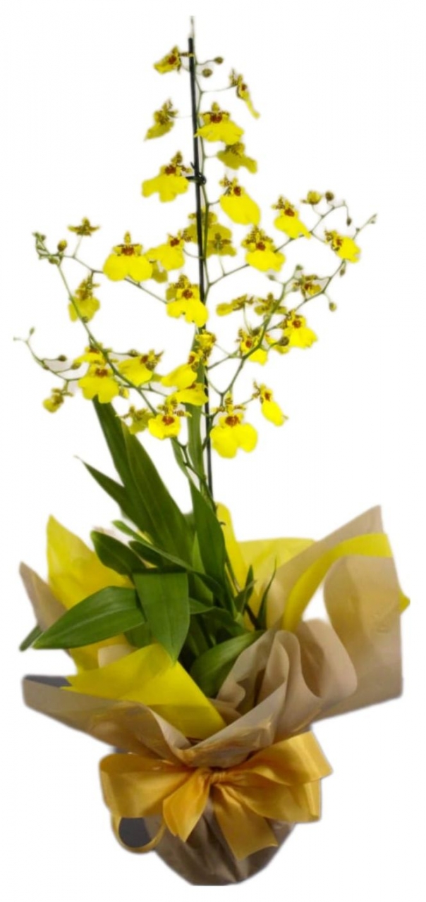 Orquídea Oncydium plantado, Embalado para presente em papel especial e Laço de cetim ou Tecido Especial.